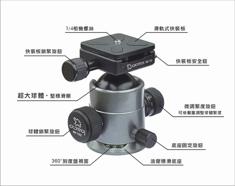 雲台:三腳架上方連接及操控相機角度之裝置、與三腳架可分離及分開採購