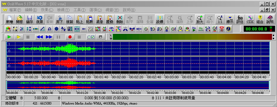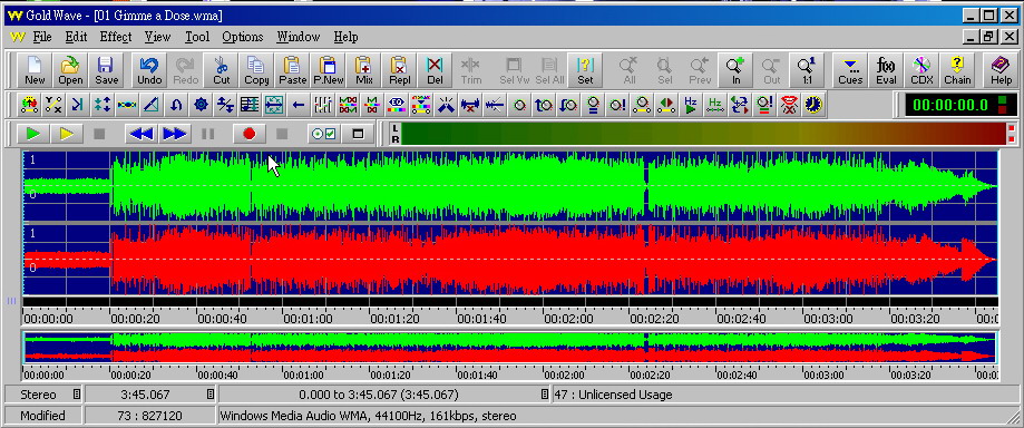 GoldWave 是一個相當棒的數碼(數位)錄音及編輯軟體,除了附有許多的效果處理功能外,它還能將編輯好的文件儲存成.WAV、.mp3、.wma、.AU、.SND、.RAW、.AFC.....等格式,而且若你的CD ROM是SCSI形式,它可以不經由音效卡直接讀取CD ROM中的音樂來錄製編輯。
