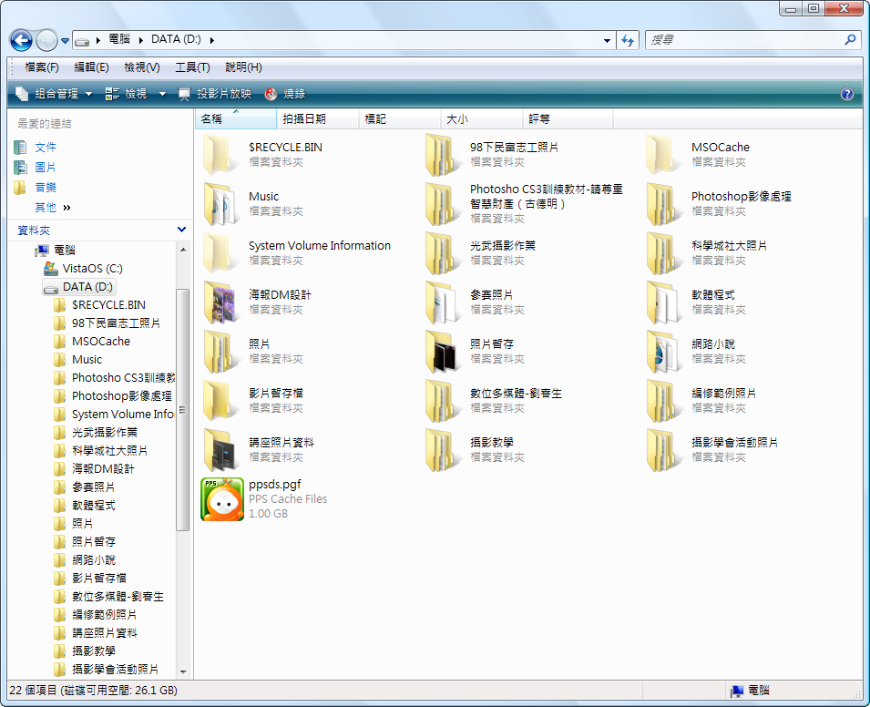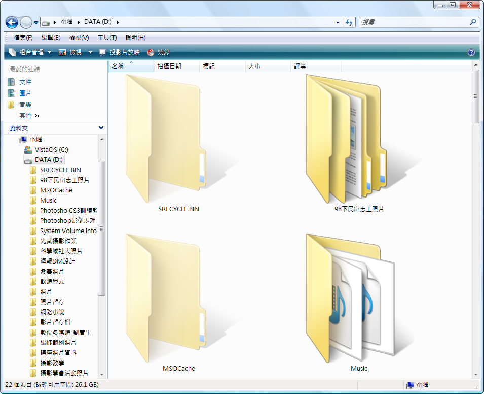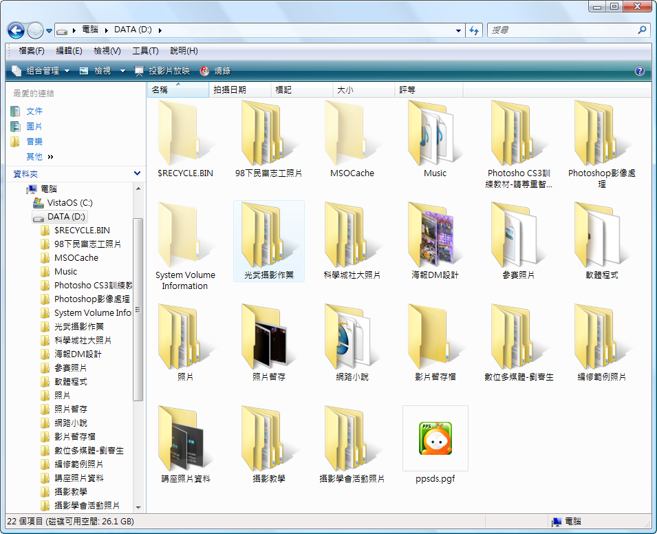 左側資料夾樹狀圖 檢視 縮圖