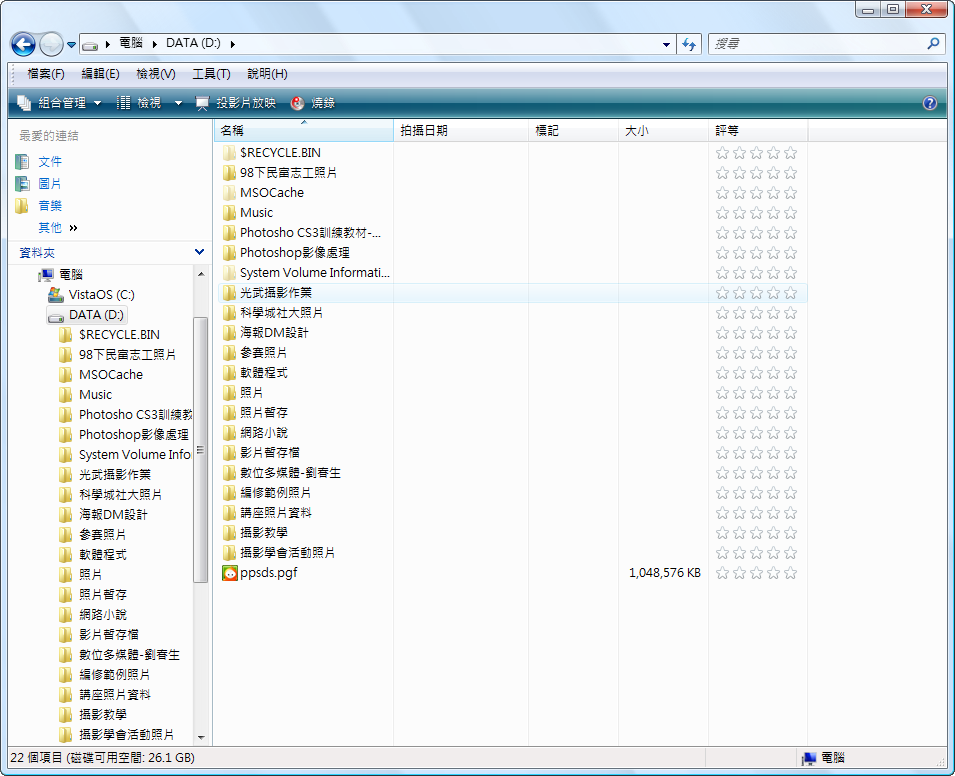 左側資料夾樹狀圖