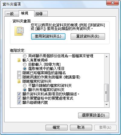 資料夾選項