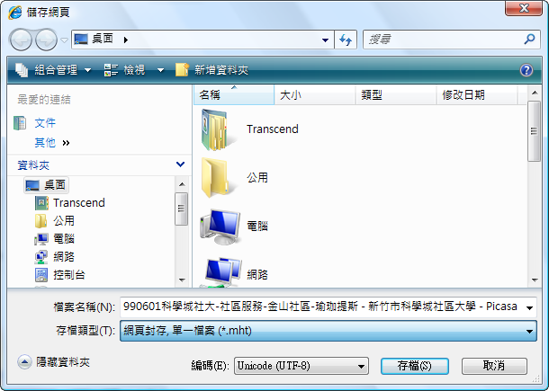 檔案 另存新檔 網頁完整 網頁封存mht檔 網頁僅html 文字檔