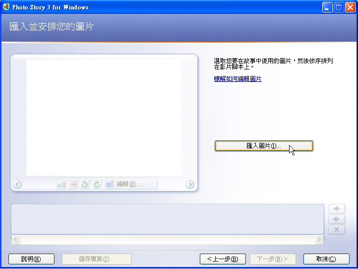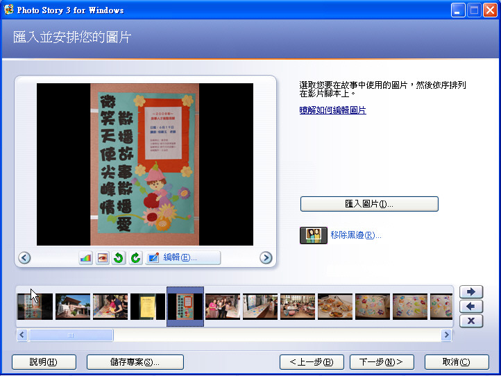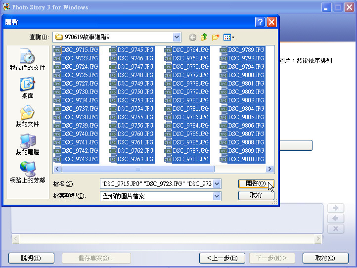 3. 匯入圖片)→瀏覽檔案→選擇圖片資料夾→選擇圖片(可用滑鼠左鍵由右上往左下拖曳選取,或按Ctrl鍵選擇)→開啟