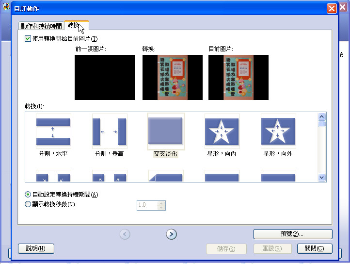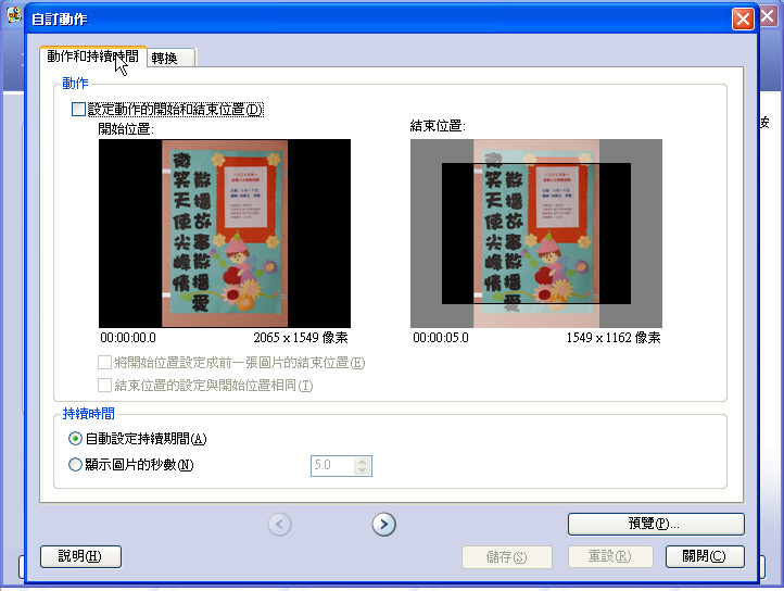 6. 自訂動作設定動作和持續時間及轉換,不設定也會有預設
