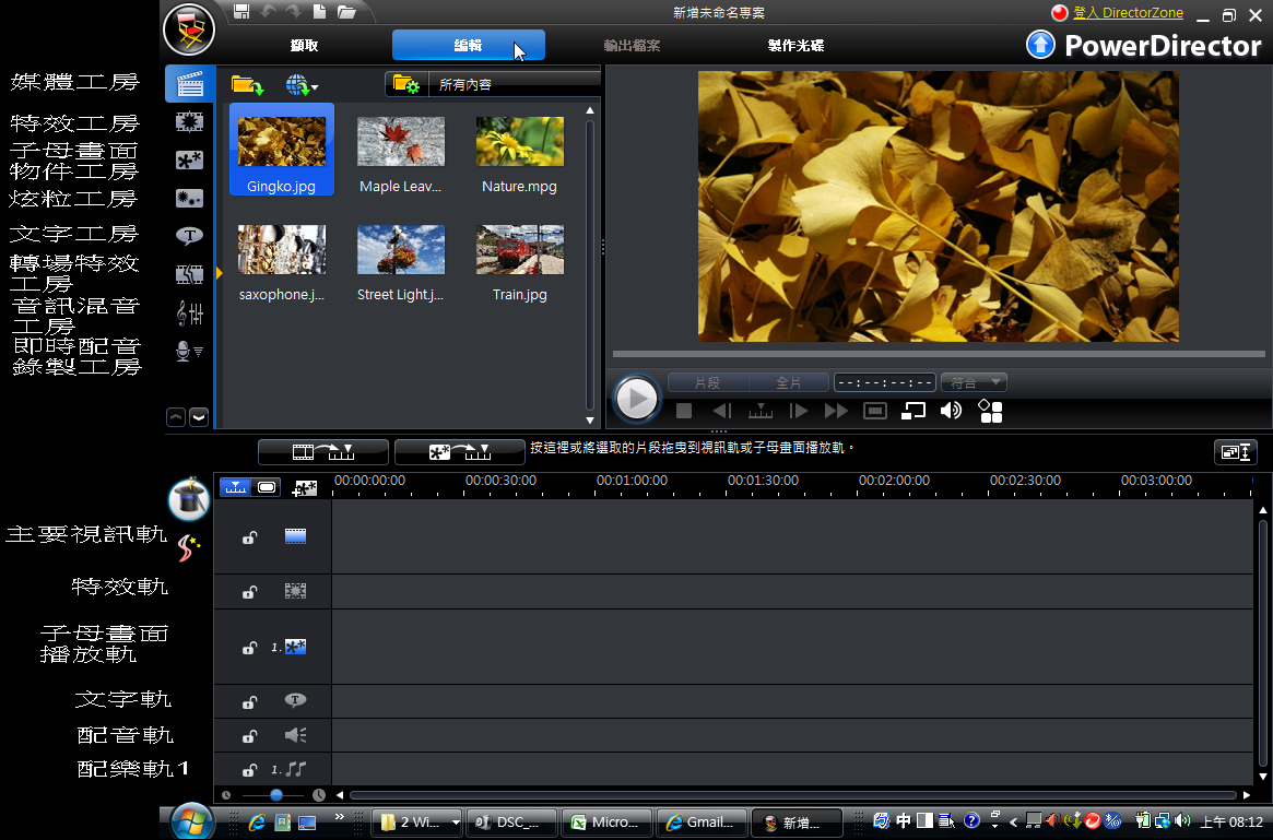 影片DVD光碟燒錄製作 訊連威力導演影片編輯程式 匯入影片、照片、字幕、音效製作、影片分割、轉場效果、影像效果、輸出成MPEG檔 燒錄DVD影片