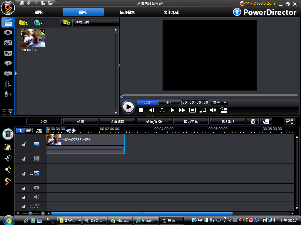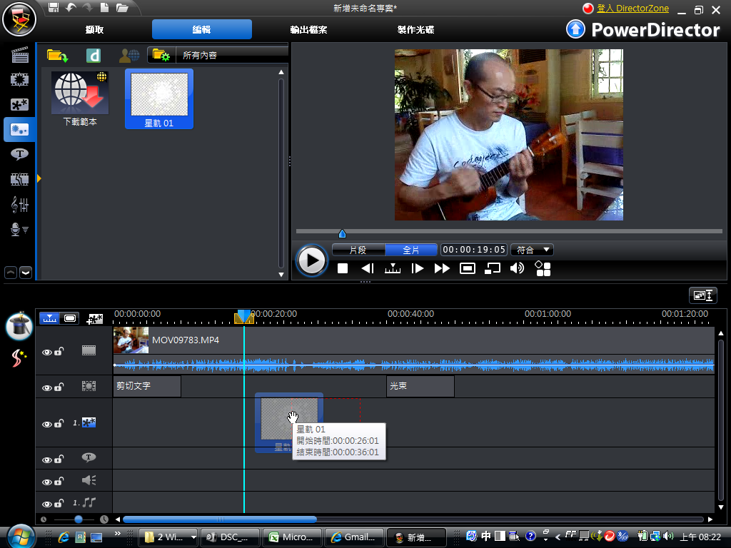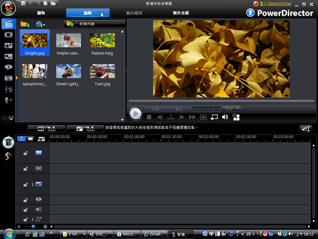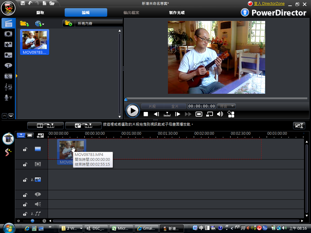 5. 將媒體庫之媒體檔用滑鼠點選拖曳至主要視訊軌
