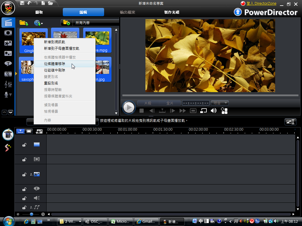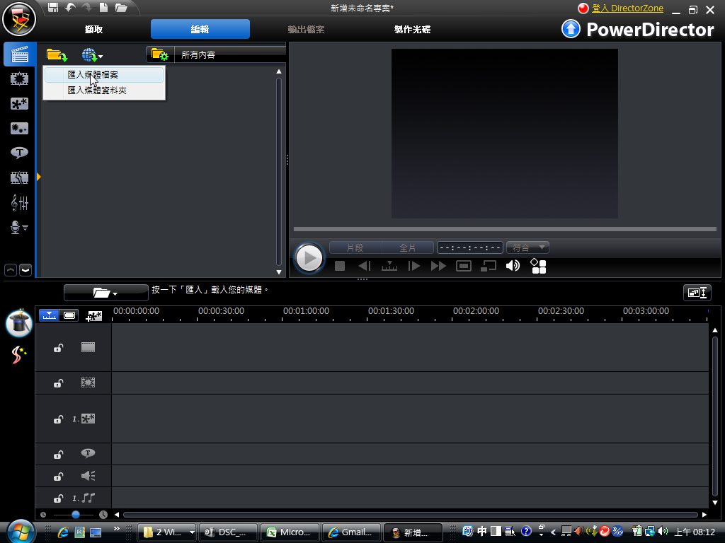 4. 匯入欲編輯之媒體檔,選擇媒體檔案路徑匯入,可為影片、相片、音樂檔
