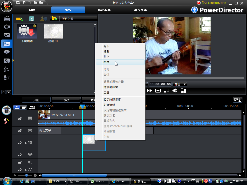 1. 編輯模式下選取單一媒體檔,可按播放鍵預覽